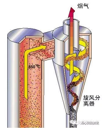 在離心力作用下,煙氣中的固體顆粒被拋向分離器筒壁,并沿壁面下滑進(jìn)入連接分離器的立管中。通過回料閥進(jìn)入爐膛。煙氣入煙道。